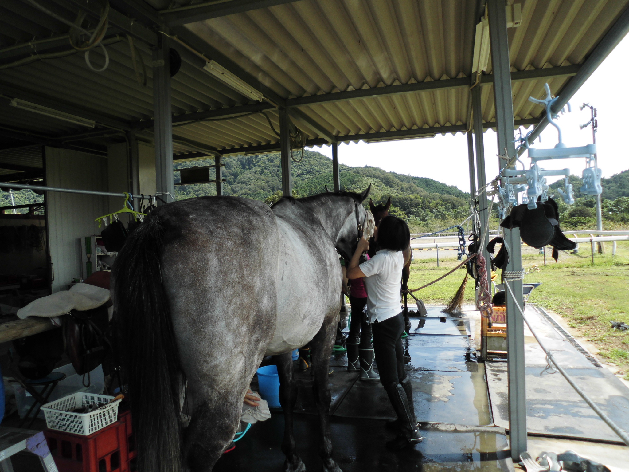 馬の手入れも体験