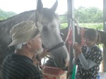 代表の高田まさきさん以下、引率3名、団員6名の方が、馬と戯れていました。