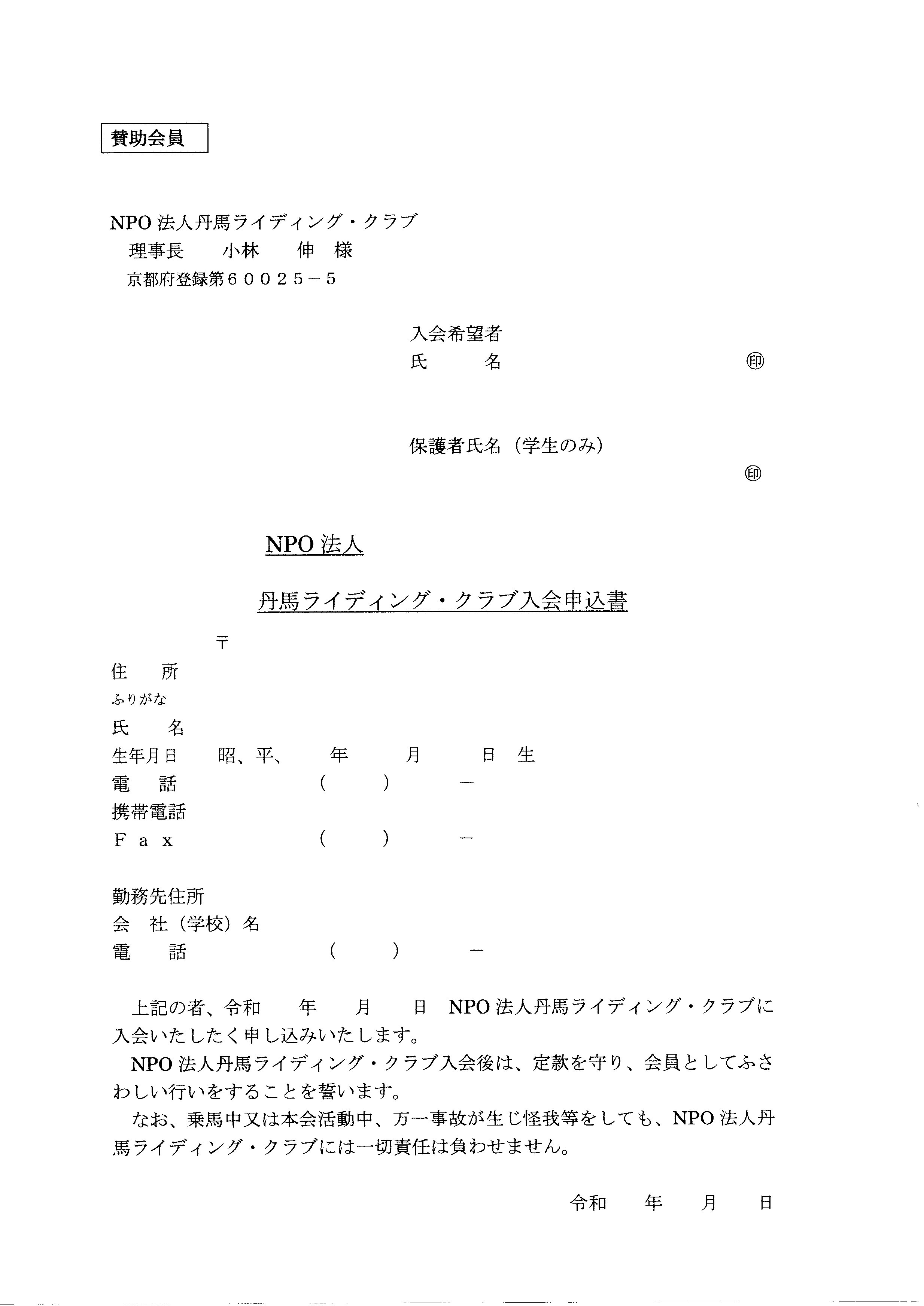 入会申込書(賛助会員)