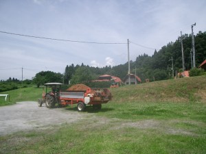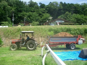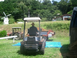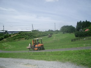先ずは、餌やりですが、「飼い葉(チモシー)」を切るところから、続いて、洗い場にて馬のお手入れ、馬房のお掃除(ボロ拾い)、ご褒美の騎乗(乗馬教室)、休憩後に事務所内の掃除、懇談、廊下の清掃という、一日のプログラムでした。